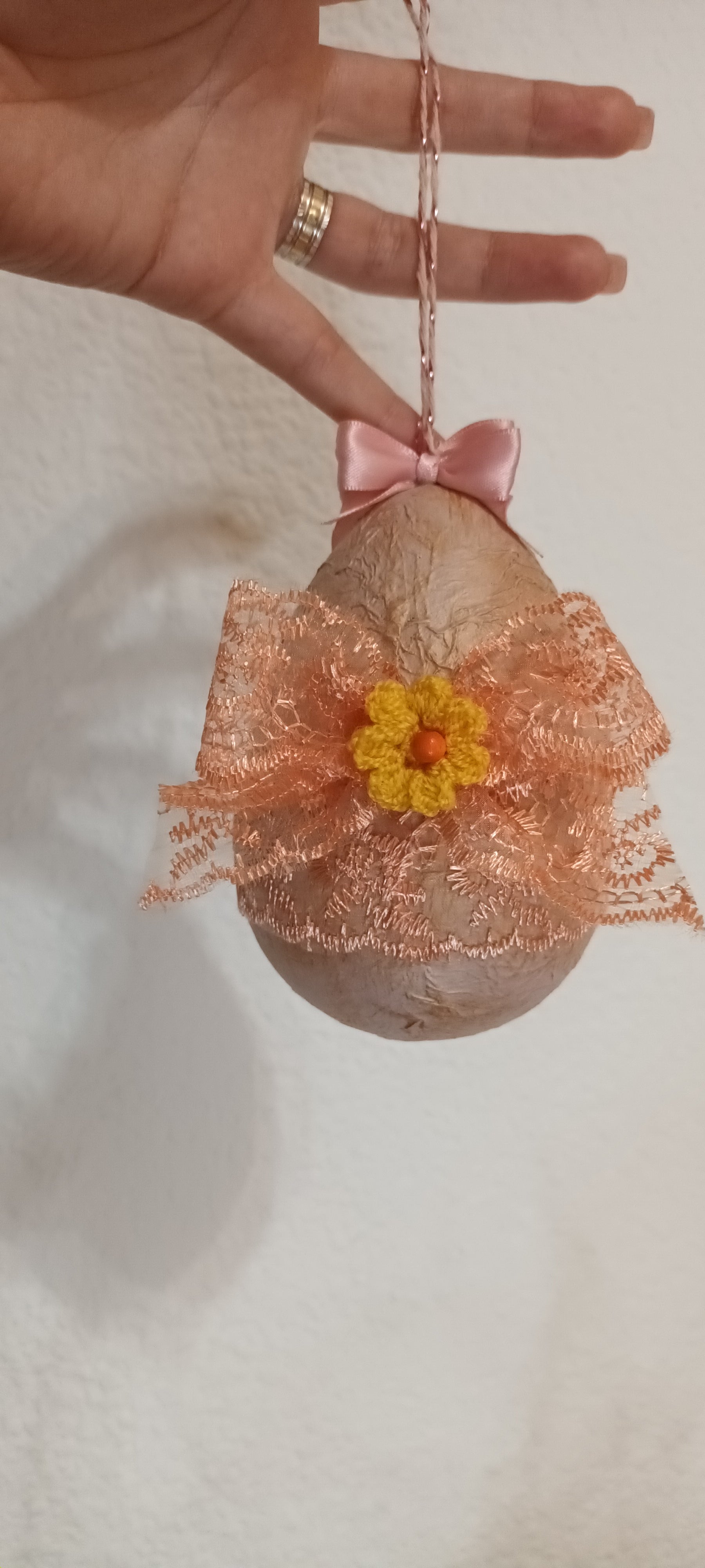 Adaugă un plus de farmec sărbătorilor de Paște cu acest ou handmade în dimensiune mare. O piesă artizanală care îmbină tradiția cu creativitatea.