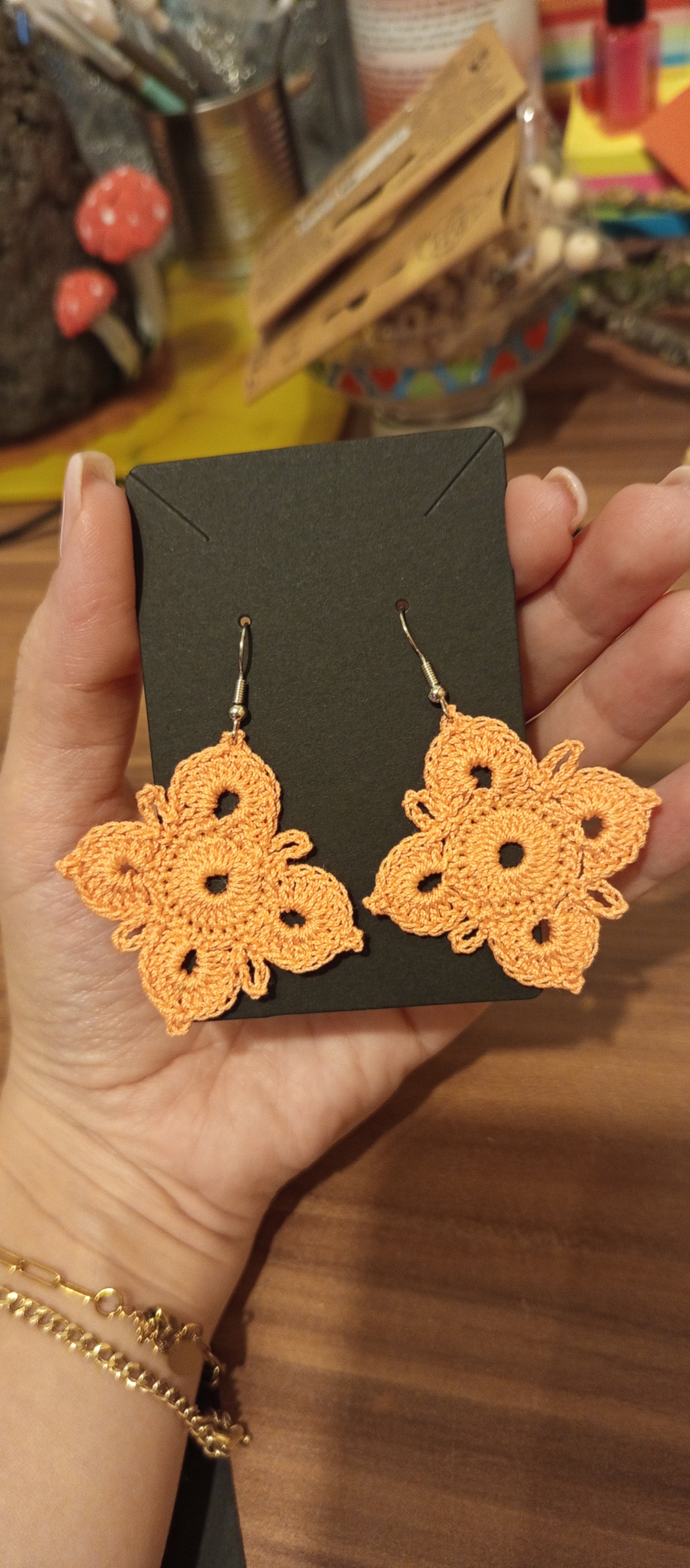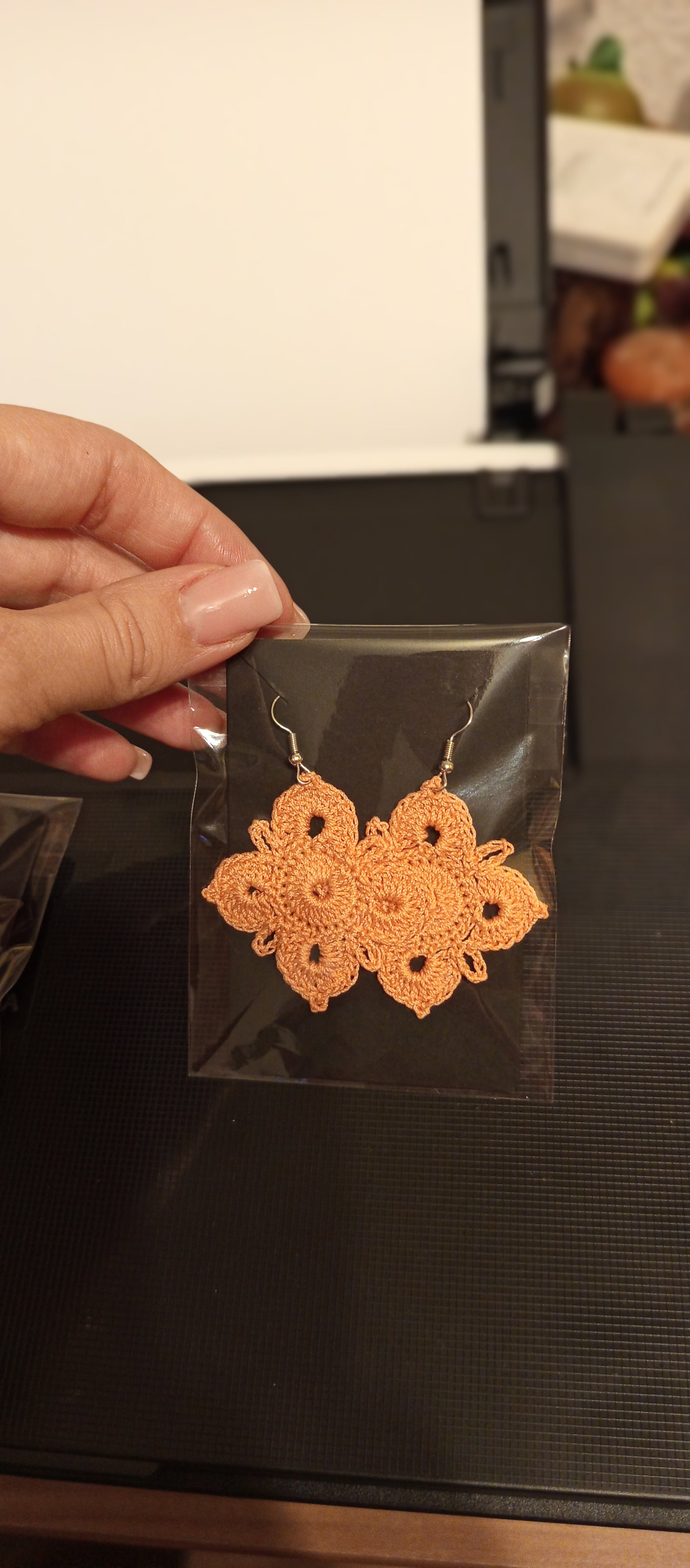 Croșetați cu grijă din fire de calitate, acești cercei sunt ușori și plăcuți de purtat toată ziua. Design-ul delicat îi face potriviți atât pentru ținute casual, cât și pentru ocazii speciale.