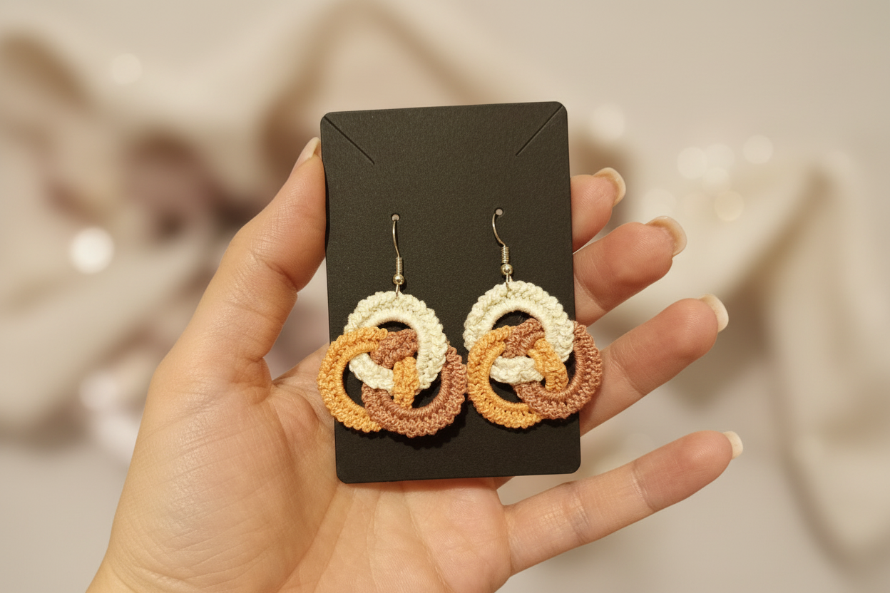 Fiecare pereche este croșetată manual, fiind un accesoriu unic și special. Acești cercei sunt perfecti pentru cei care iubesc piesele artizanale și doresc să se remarce prin originalitate.
