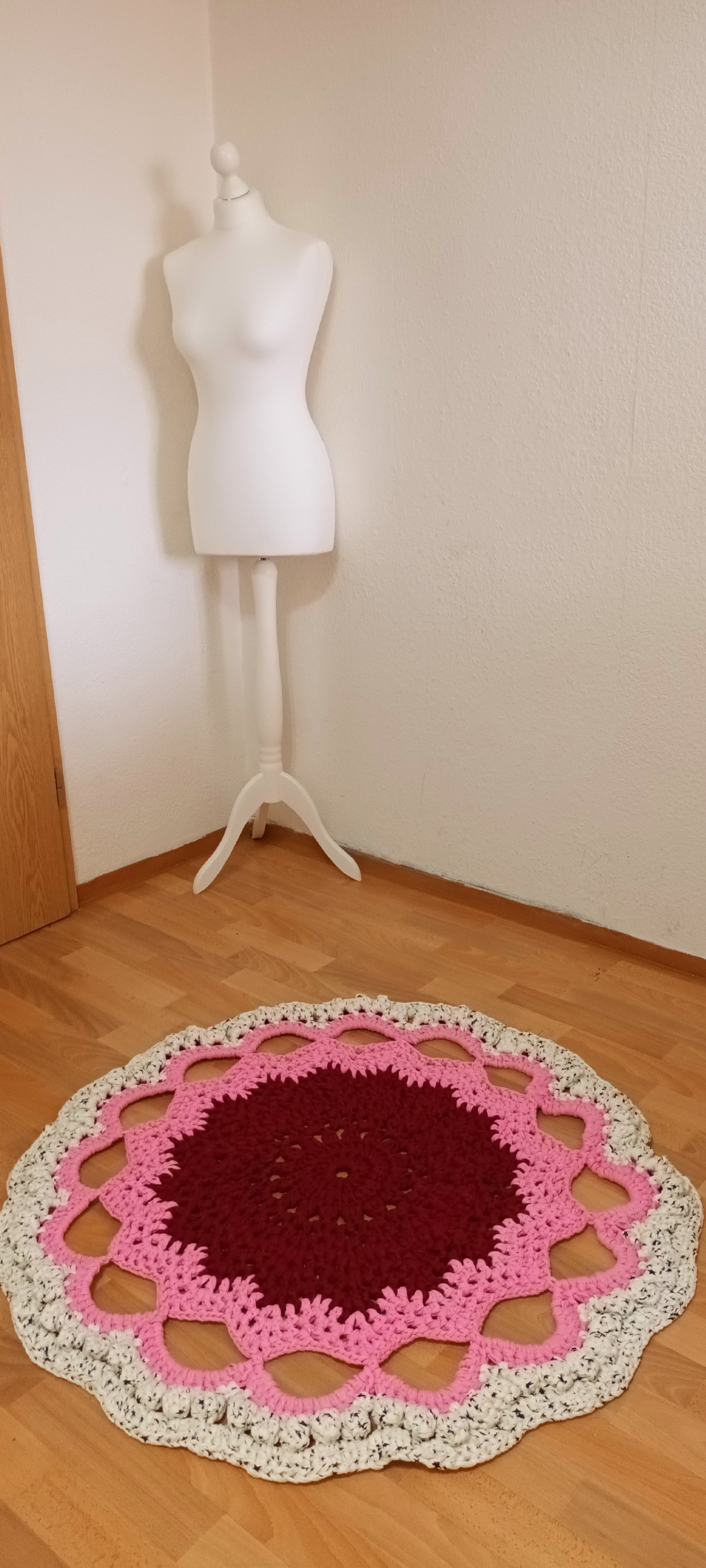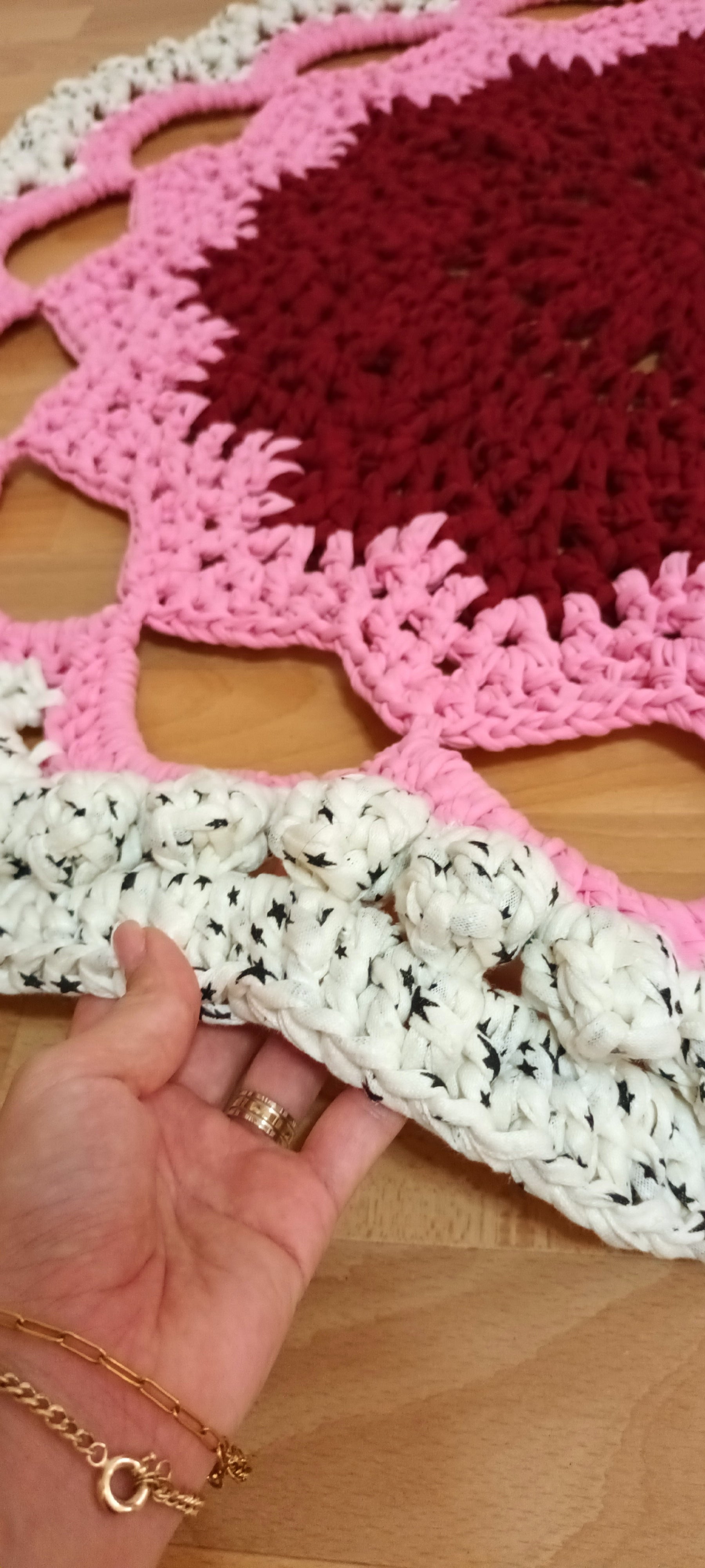 Adaugă căldură și stil casei tale cu acest covor croșetat manual. O piesă artizanală statement care transformă orice cameră într-un spațiu confortabil și elegant.