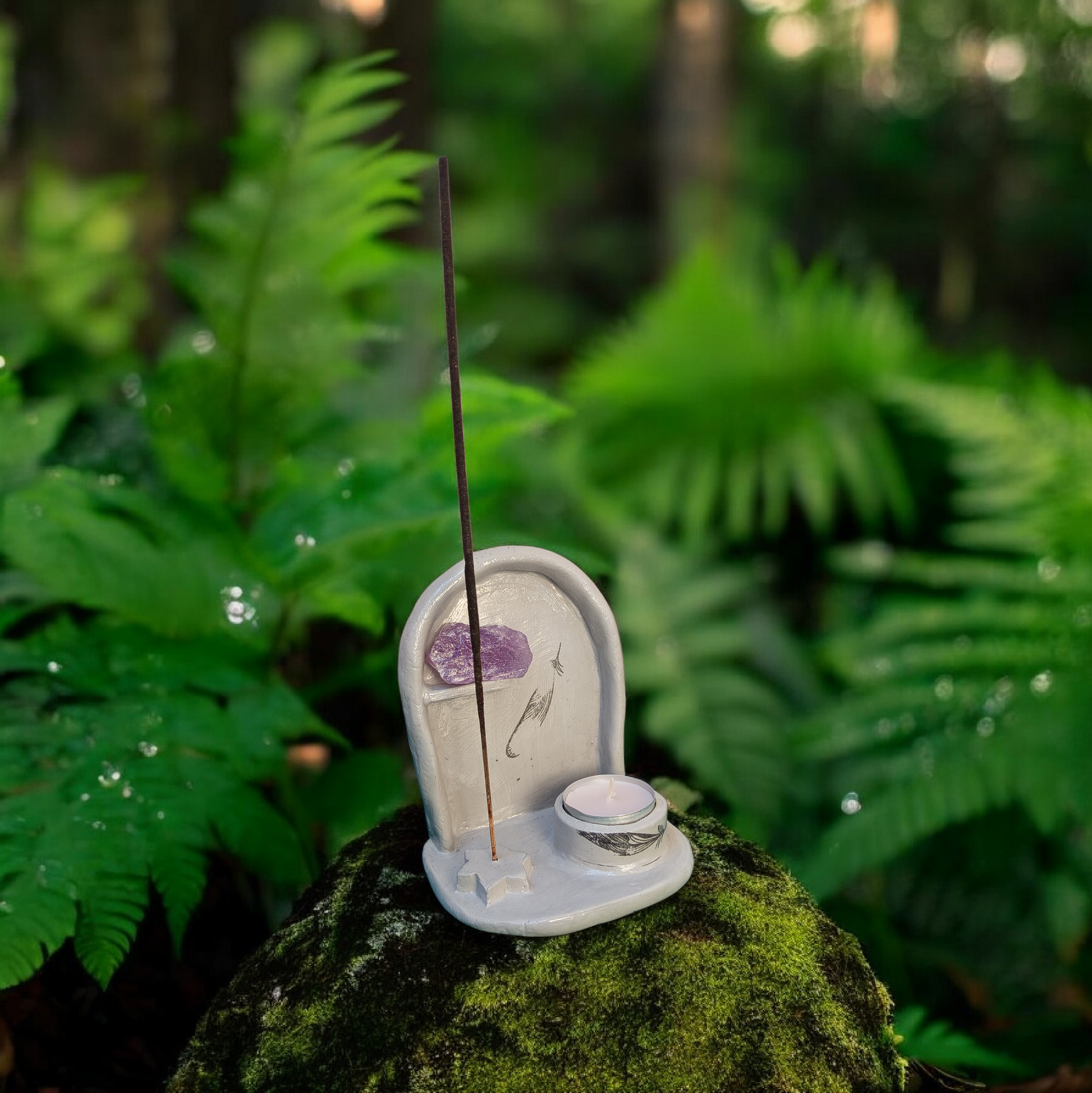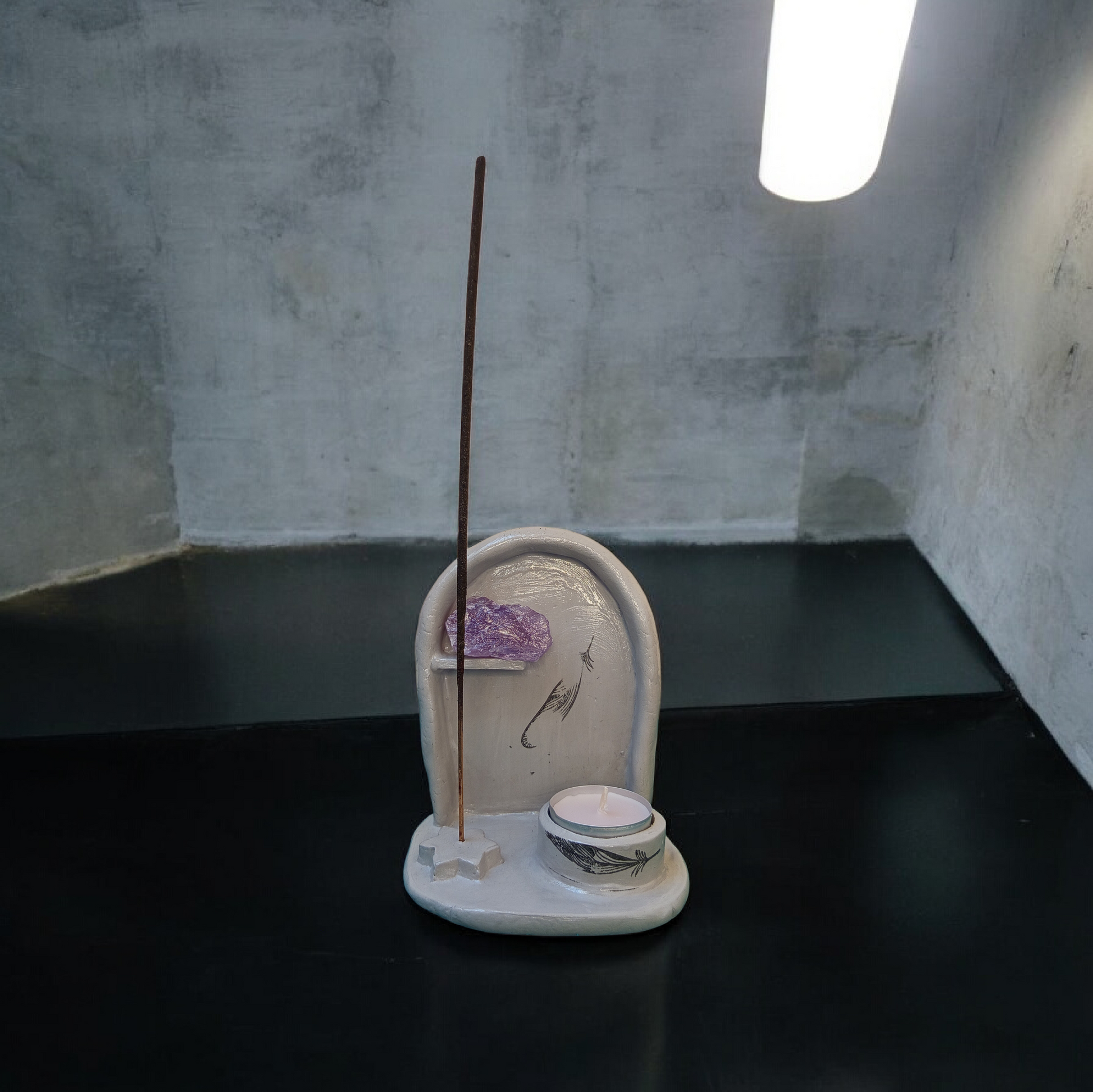 Descoperă versatilitatea acestui suport unic realizat manual din lut polimeric. Poate fi folosit atât pentru lumânări cât și pentru bețișoare parfumate, oferindu-ți flexibilitate maximă.