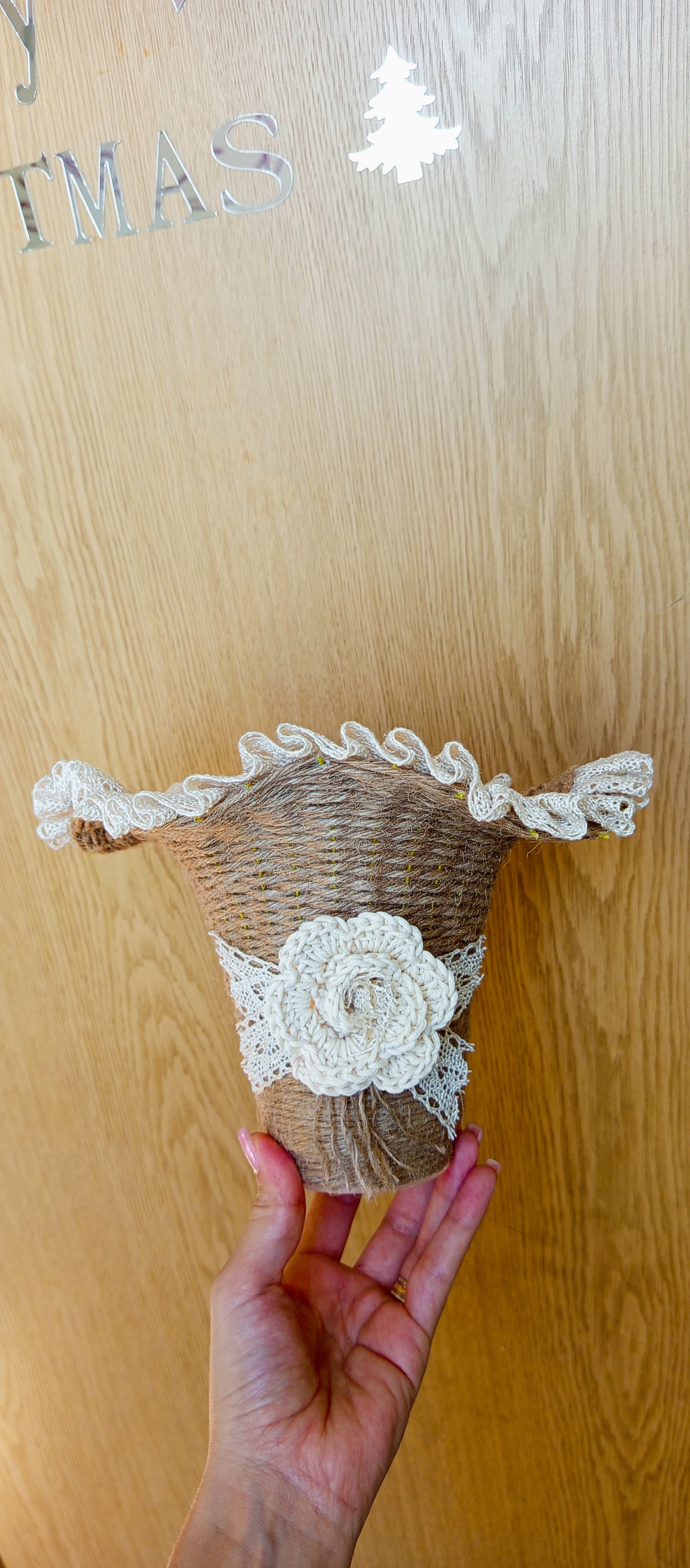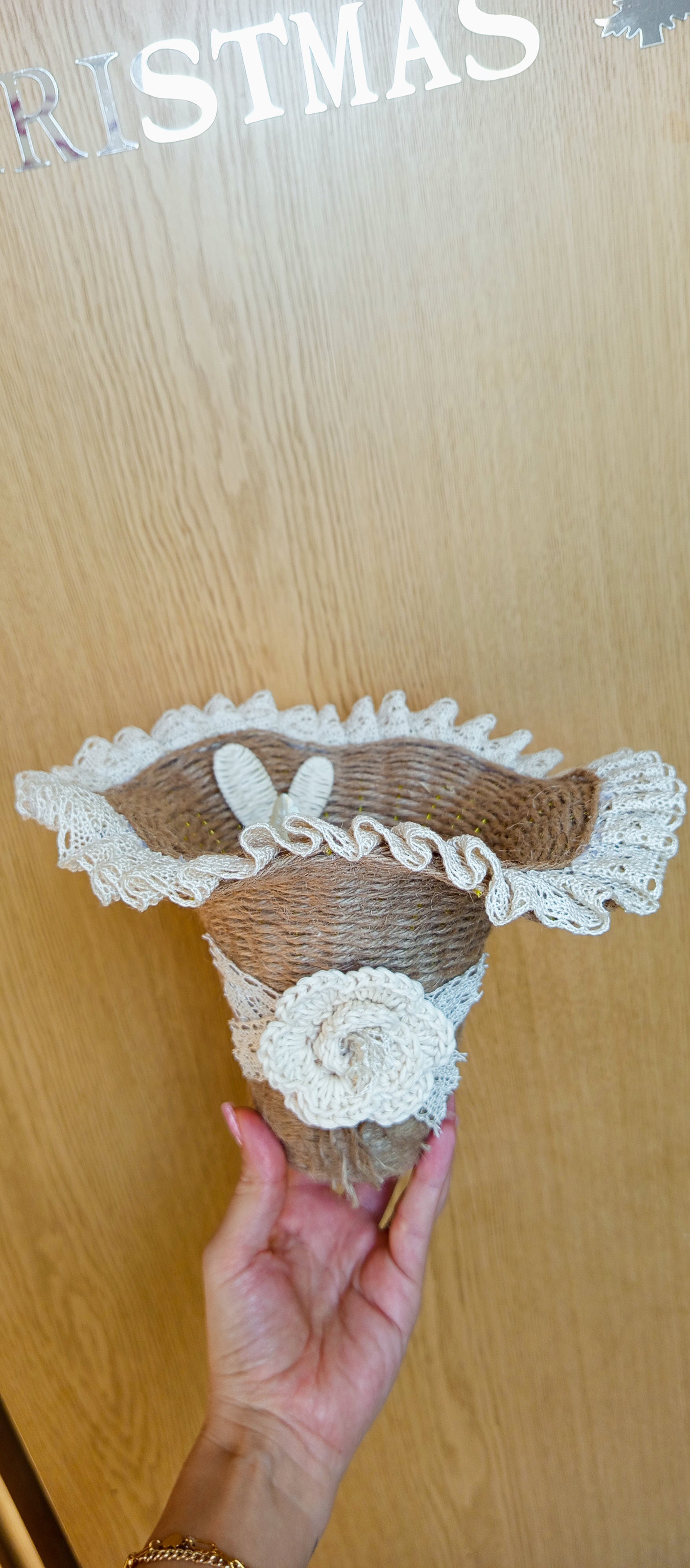 Organizează-ți spațiul cu stil folosind acest coș decorativ handmade. Combinația perfectă între funcționalitate și estetică, ideal pentru orice cameră din casă.